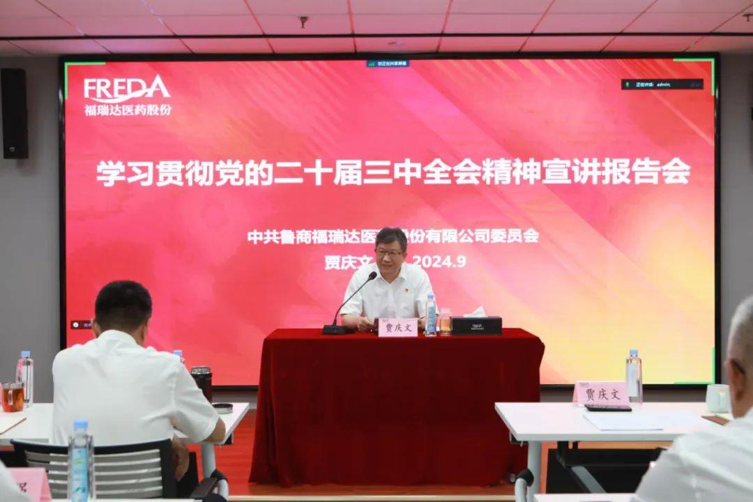 近日,福瑞達(dá)舉辦學(xué)習(xí)貫徹黨的二十屆三中全會(huì)精神宣講報(bào)告會(huì),魯商集團(tuán)黨委宣講團(tuán)成員、黨委常委、副總經(jīng)理,福瑞達(dá)黨委書(shū)記、董事…