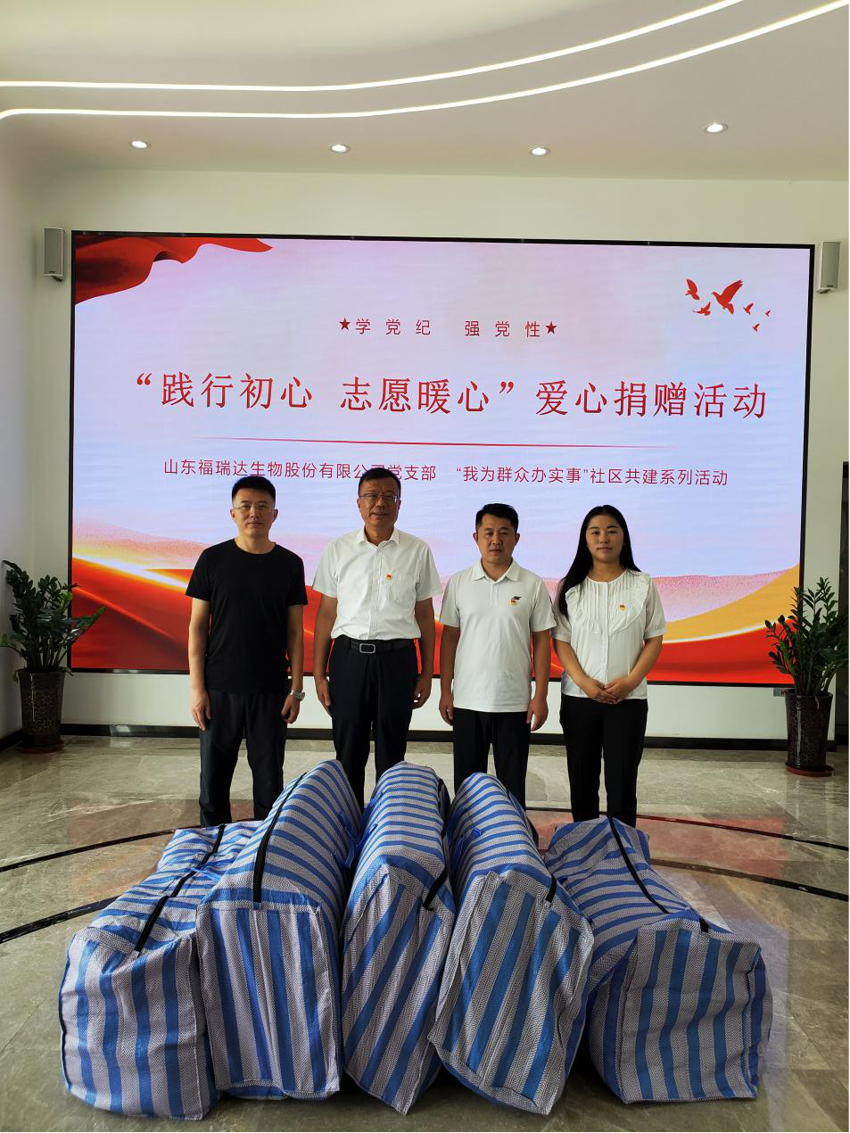 福瑞達生物黨支部開展“踐行初心 志愿暖心”愛心捐贈活動,為社區困難群眾捐贈了百余套床單被褥等生活物品,幫助困難群眾改善生活條件、送上一份關懷,以高質量發展成果回饋社會大眾。