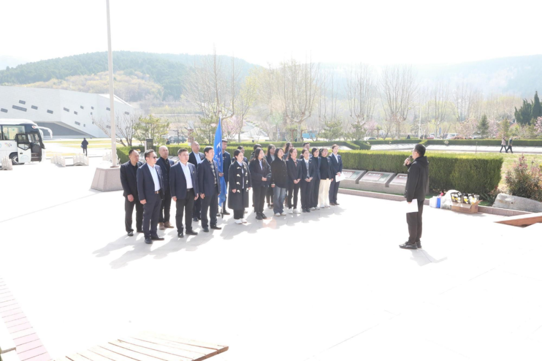 山東老戰士紀念廣場莊嚴肅穆,全體黨員干部整齊列隊,面向紀念碑肅立默哀,深切悼念為民族獨立和人民解放事業英勇獻身的山東老戰士。