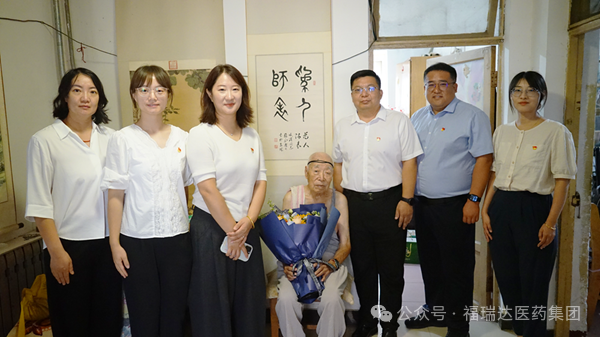 在紀念中國人民抗日戰爭暨世界反法西斯戰爭勝利80周年之際,為弘揚偉大的抗戰精神,激勵廣大黨員不忘初心、牢記使命,福瑞達醫藥發展事業部黨支部于8月26日組織開展“致敬榮光 傳承初心”主題黨日活動。支部書記王海俊帶領支部黨員代表,專程看望榮獲“中國人民抗日戰爭勝利80周年紀念章”的抗戰老兵臧濱老人,為他送去組織的關懷與溫暖,并聆聽了一堂生動的“革命歷史課”。