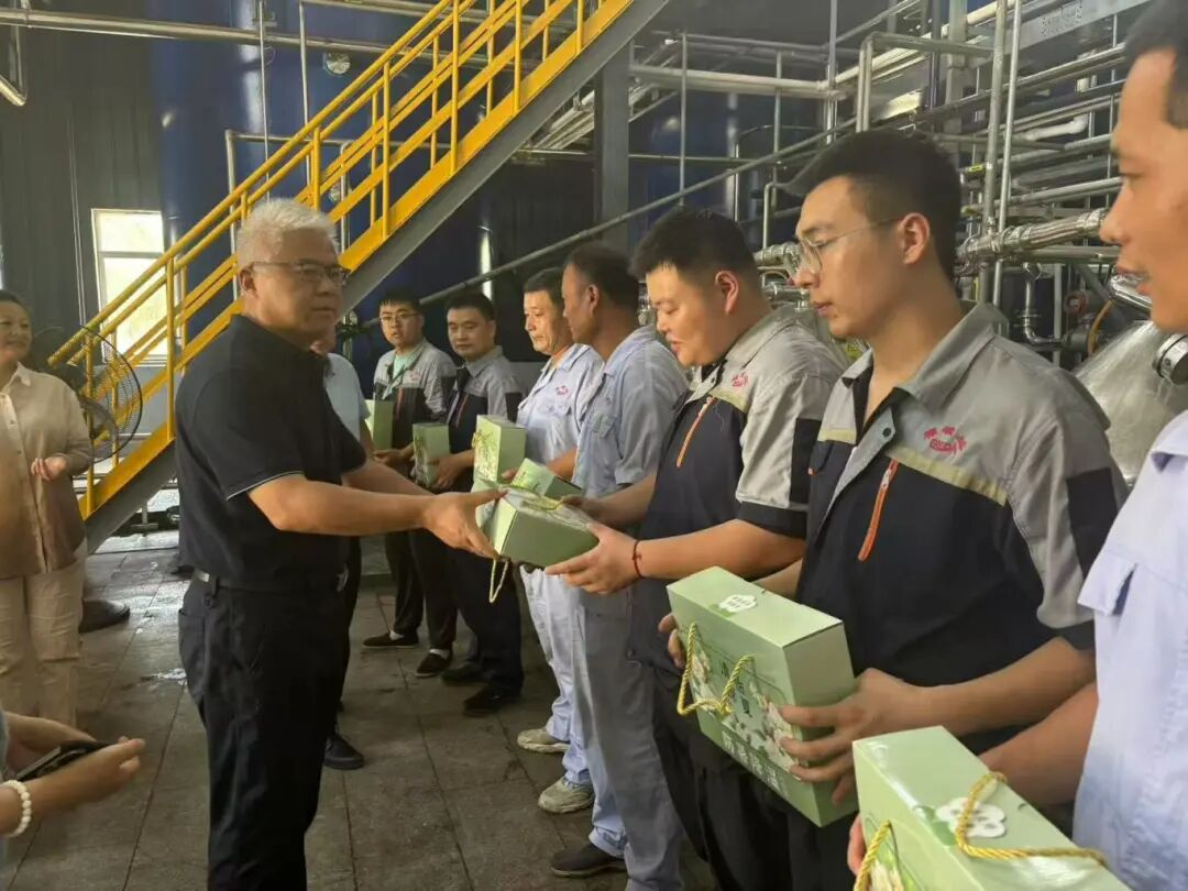 7月23日,福瑞達總經理助理賈開鈺、工會主席帶隊深入福瑞達生物科技和海佑福瑞達生產一線,走訪慰問在高溫環境下堅守崗位的職工。為他們送上精心準備的防暑降溫套裝、風扇、海鹽水、礦泉水等清涼消暑物資,并仔細詢問職工們的工作生活情況,通過科普防暑降溫小知識等形式叮囑他們保證夏季作業安全和個人身體健康。