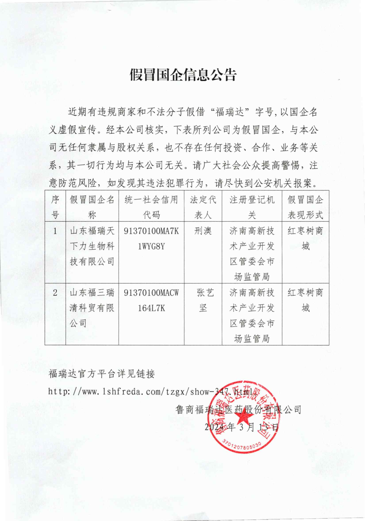 假冒國企信息公告