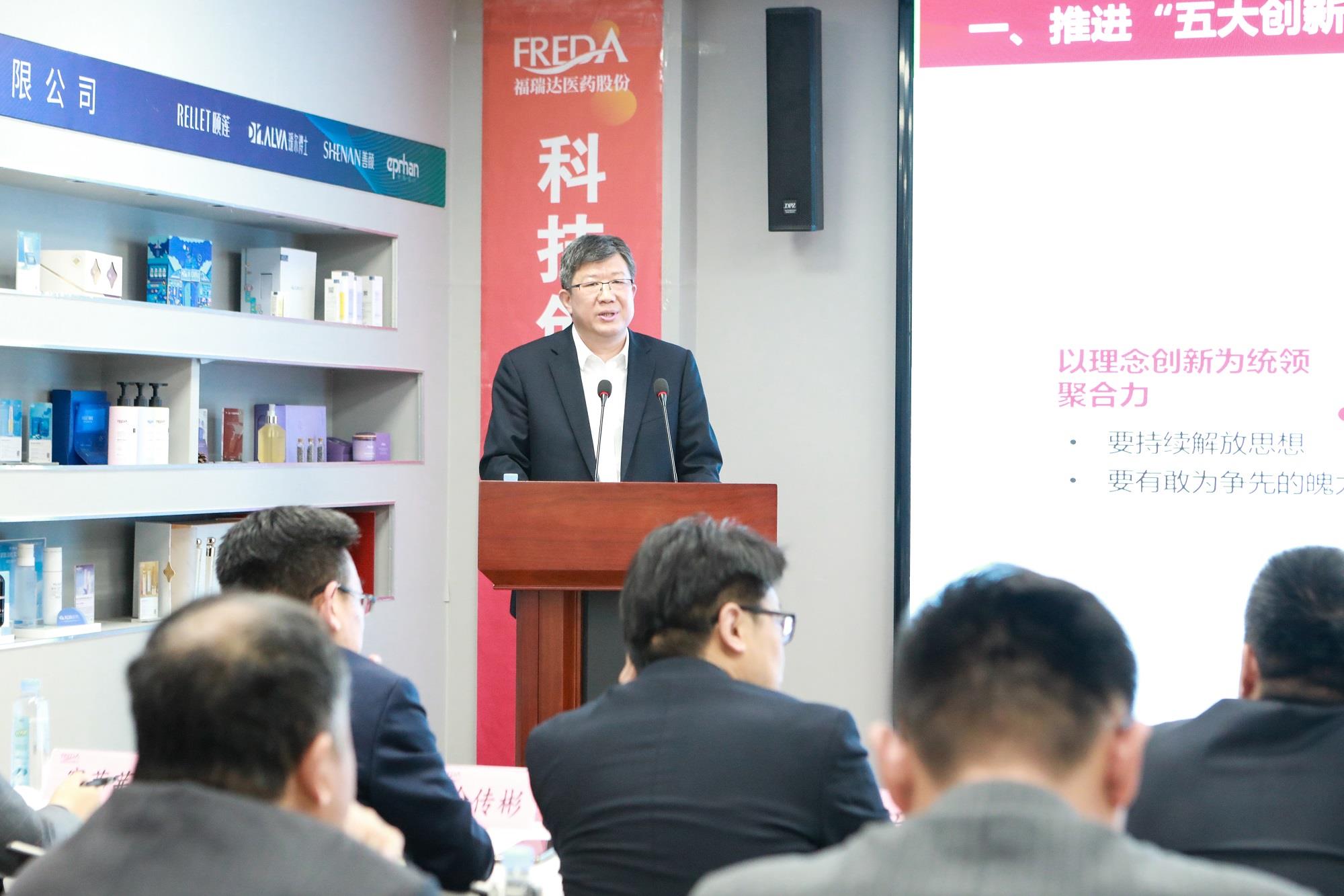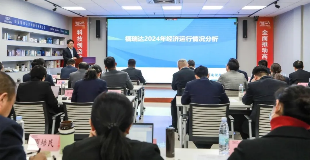 賈慶文作題為《錨定“走在前、挑大梁” 奮力“下實功、見實效” 推動高質量發展新躍遷》的講話。他指出,2024年,福瑞達在集團黨委的堅強領導下,務實篤行、銳意進取,各項工作提速提質提效,向穩有韌性,向高有突破,向質有提升,向新有動力。同時,要正視在思想解放、機制創新等方面的問題,切實補足短板。要順應趨勢、內求超越,看“形”和“勢”強信心,看“質”和“量”明方向,看“新”和“變”練內功,把握產業轉型升級新機遇。