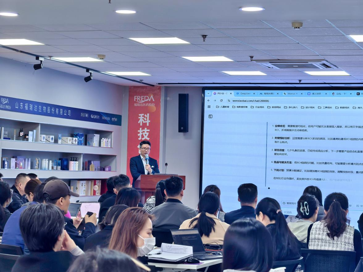 為把握AI前沿科技時代,探索智能技術賦能醫(yī)藥營銷的新路徑。3月13日,福瑞達醫(yī)藥發(fā)展事業(yè)部組織開展《醫(yī)藥銷售制勝之道:DeepSeek數據分析與銷售業(yè)績提升實戰(zhàn)》專題培訓會。醫(yī)藥發(fā)展事業(yè)部各部門員工60余人參與此次培訓,共同探討DeepSeek這一創(chuàng)新科技如何助力企業(yè)提升運營效率和管理水平。